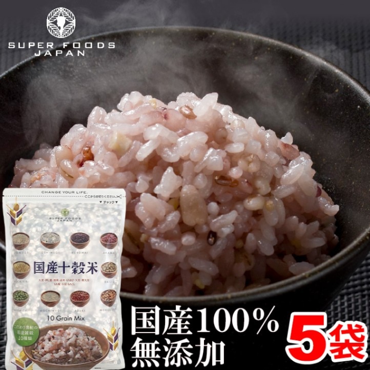 全て国内産を使用。徹底的においしさを追求。何度も試行錯誤を繰り返し、ようやく理想のブレンドに辿り着きました。「安心」「安全」国内産へのこだわり。一粒一粒があなたをサポート。大麦、押し麦、黒米、赤米、大豆、もちきび、もちあわ、もろこし、ひえ、うるちあわ。いくら健康にいいからとは言え、雑穀を続けるには、その美味しさがあってこそ。スーパーフーズジャパンは「厳選国産十雑穀米」の商品開発のため、何度も何度も配合を変えながら、度重なる試食を実施。そして、ついに納得のいく「甘み」「うま味」「香ばしさ」を兼ね揃えた味わいの雑穀となりました。