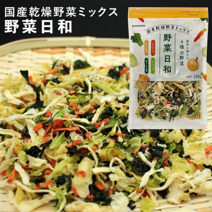 九州産のキャベツ、ほうれん草、玉ねぎ、にんじんを使用。新鮮野菜を収穫後にすぐに加工しているから、野菜の旨みや甘味を損なわず、戻しすだけで栄養たっぷりで美味しくお召し上がりいただけます。