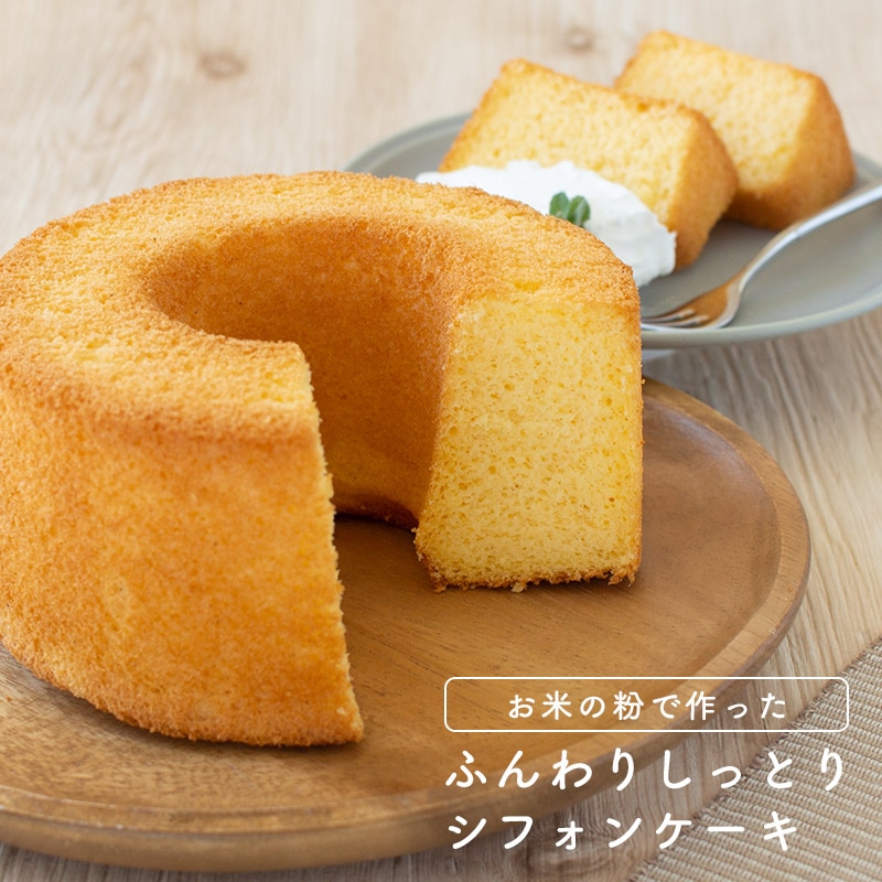 お米の粉で作った、ふんわりしっとりグルテンフリーのシフォンケーキ。軽い食感なので、お子様のおやつや朝食にも!生クリームを添えて、ティータイムや来客時にもうれしい。 冷凍品なので、食べたいときにさっと解凍して食べられます。(室温で2〜3時間で解凍できます) ※アレルギー対応食品 ではございません。 本製品は小麦を使用しておりませんが、同一工場内では以下の原料を使用した製品を製造しております。 小麦・卵・乳・ごま・大豆・ゼラチン・やまいもアレルゲン物質が微量に混入する可能性がございます。ご了承のうえ、ご購入願います。