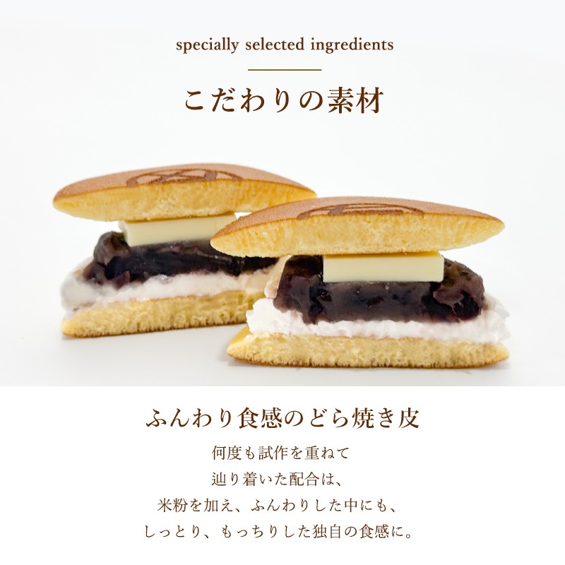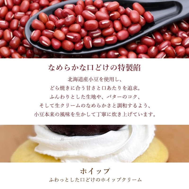 粒餡(国内製造)、ホイップクリーム、殺菌液卵(全卵)、小麦粉、加塩バター、砂糖、マルチトール、米粉、蜂蜜、食塩、みりん、サラダ油、食用油脂/トレハロース、加工澱粉、膨張剤、カゼインNa、セルロース、安定剤(増粘多糖類)、香料、乳化剤、(一部に小麦・卵・乳成分・大豆を含む)